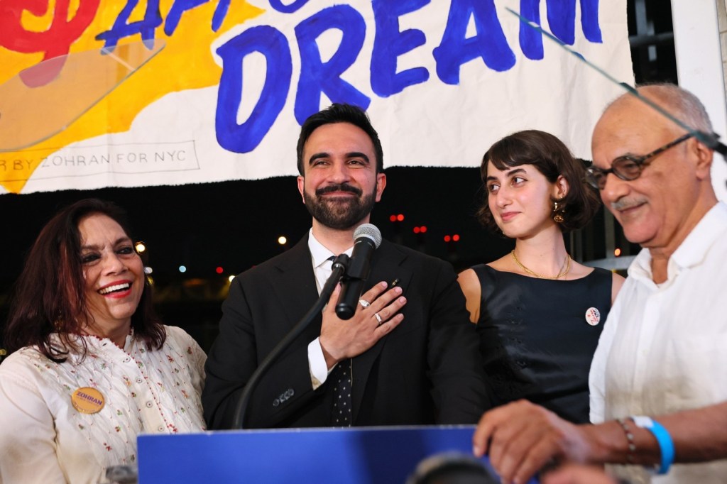 Zohran Mamdani, on June 24, 2025, with his mother Mira Nair, famous Indian -American filmmaker,her artistic vision having long captivated audiences worldwide, her heritage rooted in Punjabi Hinduism. Completing this extraordinary family portrait were his wife, Rama Duwaji, and his father, Mahmood Mamdani, a distinguished Columbia University professor whose incisive expertise in postcolonialism is underpinned by a unique personal history as an Indian expatriate in Uganda, tracing his lineage to Gujarati Shia Muslim descent. This convergence of intellect, artistry, and diverse heritage offers a compelling glimpse into the forces shaping one of New York’s most intriguing public figures, Zohran Mamdani.